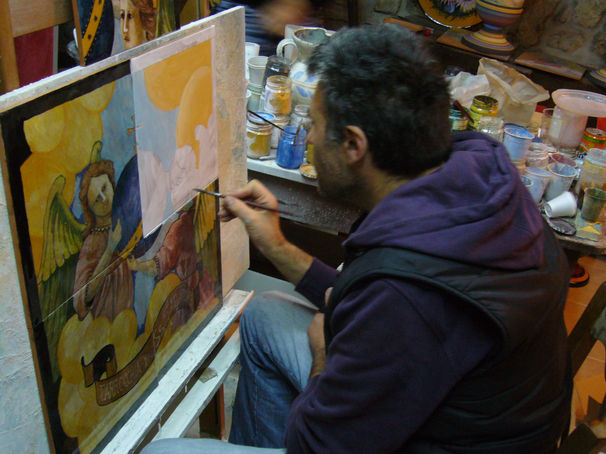 Nell'antichità il piccolo borgo di Castelpagano ha conosciuto un periodo di fiorente artigianato. C'erano vari mestieri che servivano a soddisfare il bisogno della comunità castelpaganese. Fin dalla mia prima giovinezza ho avuto il piacere grazie alla mia curiosità di assaporare le varie botteghe, tra cui quella di "Zi Antonio Ro Pignatare". In seguito conobbi anche suo fratello Giuseppe, il quale aveva un laboratorio di ceramica a Santa Croce del Sannio. Frequentano il liceo artistico di benevento e facendo ritorno ogni pomeriggio, correvo per far visita al laboratorio di "Zi Antonio Lupo". Nell'andare appresi la lavorazione con il tornio e la decorazione della ceramica. Seguendo la bottega rimasi stupito dalle varie fasi della lavorazione di questa, dalla torniatura alla cottura nella grande fornace a legna. Tutto questo spronò la mia fantasia e aprì il mio mondo artistico. Per approfondire l'arte della ceramica feci un corso nella bottega di Elvio Sagnella, a San Lorenzello. Il primo lavoro che mi diede lustro mi fu commissionato dal parroco (Don Sergio Rossetti): il timpano della facciata della Chiesa di San Rocco (8m di lunghezza per 3m di altezza), rappresentante la "Gloria di San Rocco". Un altro mio lavoro si trova nella Chiesa del SS. Salvatore a Castelpagano: 3 pannelli a pavimento raffiguranti la vita di Gesù. Sempre nello stesso luogo sono presenti 14 stazioni della via crucis in ceramica e un leggio in pietra con decorazione floreali. Ho lavorato anche per la Chiesa di San Gennaro a Benevento (tre pannelli rappresentanti la Sacra Famiglia, San Michele Archangelo e la Madonna del terzo millennio), commisionatomi da Mons. Pasquale Maria Mainorfi. Anche nella sala reliquie del Convento Francescano di Morcone sono presenti due pannelli da me realizzati: la figura di Padre Pio e lo Stemma Francescano. Nella Chiesa Parrocchiale di Sassinoro, invece, è presente un pannello in ceramica del Battesimo del Signore. Il 16 Dicembre del 2016 fui ricevuto in udienza da sua Santità Papa Francesco e fui onorato di regalargli una mia Ceramica: un vaso raffigurante una scena pastorale con paesaggio castelpaganese. La mia opera più recente è un pannello raffigurante San Giuseppe, che andrà a finire alla Chiesa di Vitulano.